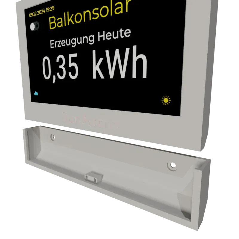 Montieren Sie Ihren 7-Zoll sunastro Energiemonitor elegant und sicher an der Wand. Diese passgenaue Halterung sorgt für einen festen Sitz und einen sauberen, schwebenden Look. Ideal, um Ihr Energie-Cockpit zentral im Flur, in der Küche oder im Wohnzimmer zu platzieren.